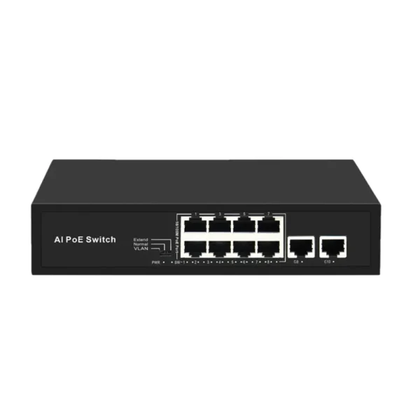 - 8*10/100M POE порты + 2* 1000M Ethernet Uplink порты;